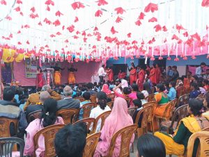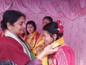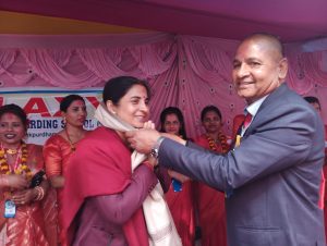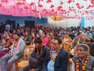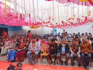 साथै सम्बन्धीत पालिकाहरुले समेत सो कार्यमा सम्बन्धीत विद्यालयलाई सहयोग गर्न आग्रह समेत गर्नुभयो । त्यसैगरी शुभकामना मन्तब्य मधेस प्याब्सनको केन्द्रीय सल्लाहकार भोला मिश्र,केन्द्रीय सचिव पवन कुमार साह,जिल्ला अध्यक्ष सुजित मिश्र तथा साह युनिफार्मको संचालक विजय साहले दिनु भएको थियो । कार्यक्रम सो विद्यालयको प्राचार्य अमरेन्द्र कुमार झाको अध्यक्षतामा संचालन भएको थियो भने विशिष्ट अतिथिको रुपमा मधेस प्याब्सनको सल्लाहकार भोला मिश्र,केन्द्रीय सचिव पवन कुमार साह, के.कोषाध्यक्ष अविनाश प्रताप सिंह, प्रदेश संयोजक मुरारी लाल कर्ण, जिल्ला अध्यक्ष सुजित मिश्र, अभिभावक, गुरुवर्ग, विद्यार्थीहरु, पत्रकार, नागरिक समाज, सुरक्षाकर्मीहरुको बाक्लो उपस्थिति रहेको थियो ।कार्यक्रमको प्रमुख अतिथि मन्त्री तिवारीलाई सो विद्यालयका विद्यार्थी तथा गुरुहरुले फुलको माला,गुलजस्ता तथा टीका लगाई स्वागत गरेका थिए भने उच्च सम्मान स्वरुप फुलको वर्षा समेत गरिएको थियो । त्यसैगरी विद्यालयको प्राचार्य अमरेन्द्र कुमार झाले समेत मन्त्री तिवारीलाई मनमोहक गुलजस्ताले सम्मान गर्नु भएको थियो । कार्यक्रमको संचालन कार्यक्रमको अध्यक्ष झा,मन्त्री तिवारी,विशिष्ट अतिथि तथा अतिथिहरुले सँयृुक्त रुपमा पानसमा राखिएको दीप प्रज्जवल गरी माता सरस्वतीको प्रतिमामा फुल,माला तथा अवीर चढाई पुजा अर्चना गरेका थिए । विद्यार्थीहरुले कर्णप्रिय राष्ट्रिय गान प्रस्तुत गरेका थिए भने सोही विद्यालयको लेखापाल निकी चौधरीले स्वागत मन्तब्य राख्नु भएको थियो ।विद्यार्थीहरुको आकर्षक तथा प्रेरणादायी नृत्य,नाटक,गायन,कविता बाचन,साना बालबालिकाको एकल तथा सामुहिक प्रस्तुतीले मन्त्री तिवारी साह्रै खुशी भएकी थिइन । कार्यक्रममा सहभागि विद्यार्थीहरुलाई मन्त्री तिवारीले आफ्नै हातले टीका लगाई प्रशंसा पत्रले मनोबल बढाएका थिए भने कर्मयोगी तथा मिहिनेती त्यही विद्यालयका गुरुहरुलाई समेत टीका,माला,खादा तथा मायाको चिनोले सम्मान गर्नु भएको थियो । कार्यक्रममा उपस्थित अभिभावक तथा आगन्तुकहरुलाई समेत माला तथा टीका लगाई उच्च आदर गरिएको थियो । मन्त्री तिवारीलाई प्राचार्य झाले दोसल्ला ओढाई टीका,माला तथा मायाको चिनोले उच्च सम्मान गर्नु भएको थियो । कार्यक्रममा मधेस प्याब्सनका केन्द्रीय सचिव साहले शुभकामना मन्तब्य राख्दै जनकपुरधाममा रोकिएको नयाँ विद्यालय दर्ता तथा अपग्रेडको समस्यालाई समाधान गर्न गराउन पहल गरिदिन मन्त्री तिवारीलाई ध्यानाकर्षण गराउनु भएको थियो भने मधेस प्याब्सनको जिल्ला अध्यक्ष सुजित मिश्रले समेत शुभकामना मन्तब्य राख्दै विद्यालयको अनुगमन हुनु पर्ने,रोकीएको नयाँ विद्यालय दर्ता तथा अ