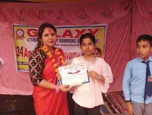 ग्यालेक्सी हायर सेकेण्ड्री बोर्डींग स्कुलको ३४ औ वार्षिकोत्सवको अवसरमा प्रमुख अतिथि तथा शिक्षा तथा सँस्कृति मन्त्री माननीय रानी कुमारी तिवारीले विद्यालयलाई बधाई दिदै विद्यालय परिवारको उच्च प्रशंसा गर्नु भएको छ । मन्त्री तिवारीले सरकारी विद्यालय नीजि विद्यालय भन्दा महँगो रहेको छ । किनभने सरकारी विद्यालय जनताको राजस्वबाट नै संचालन भएको छ । सरकारी शिक्षकको सेवा सुविधा निजि भन्दा पनि राम्रो छदाछदै सरकारी विद्यालयको अवस्था कमजोर हुनमा राज्य तथा नागरिक समाज जिम्मेबार रहेको बताउनुभयो ।